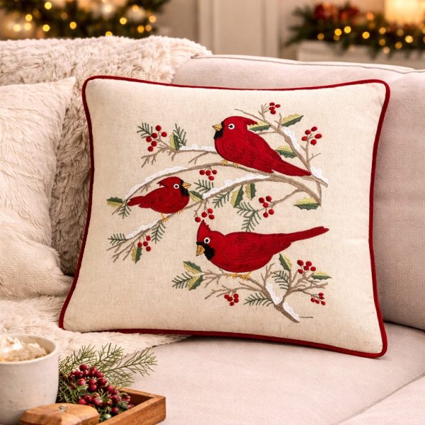 Cardinal Trio Holly Branch Red Velvet 18”SQ